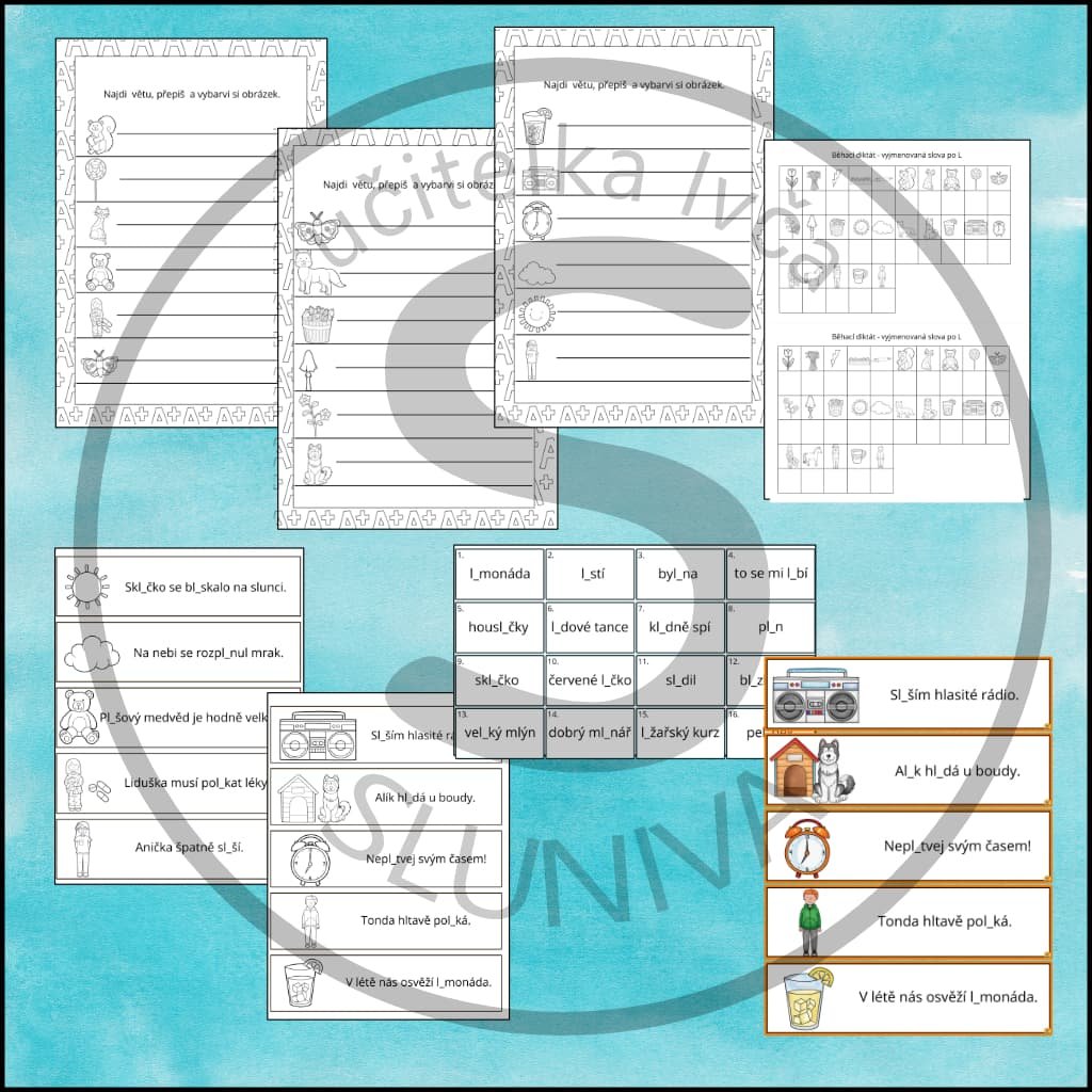 Materiál je zaměřený na vyjmenovaná slova po L a jejich správné použití ve větách. Děti vyhledávají kartičky s větami, větu si přečtou, zapamatují a poté ji přesně přepíší do záznamového listu.