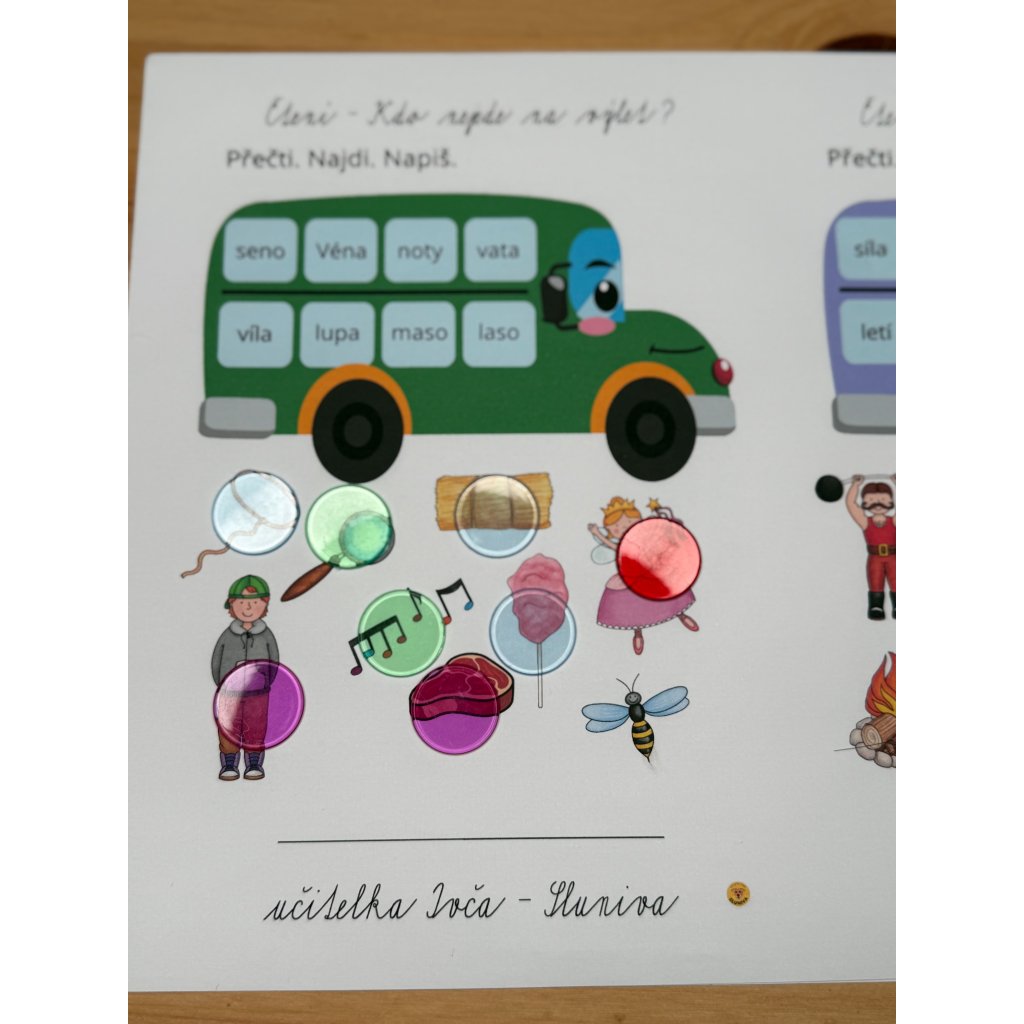 Dítě si přečte slovo a najde obrázek, který k němu patří. Pak už jen označí správnou volbu (zakroužkuje, vybarví, spojí – podle toho, jak si to nastavíš). Můžeš využít i variantu „přečti–najdi–napiš“, kdy dítě doplní nebo opíše slovo.