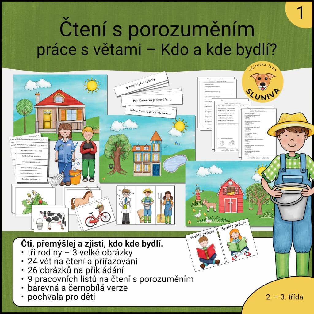 Čtení s porozuměním – práce s větami – Kdo a kde bydlí?