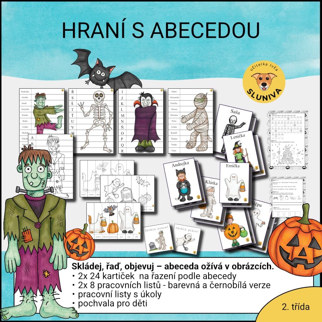 - 8 pracovních listů s úkoly na procvičení abecedy