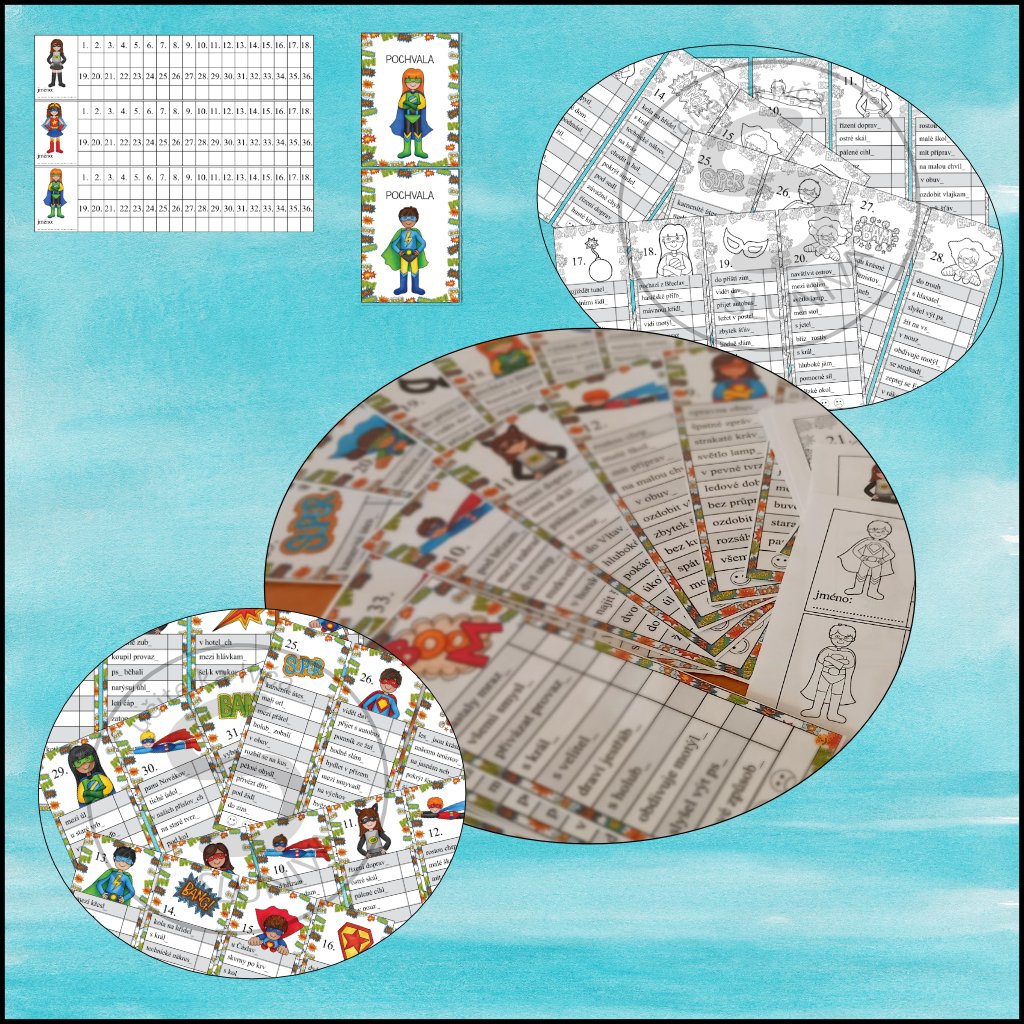 Každá kartička má slova, která čekají na správnou koncovku. Děti přemýšlí, dopisují a na závěr? Sebehodnocení! Protože radost z úspěchu je stejně důležitá jako správná odpověď.