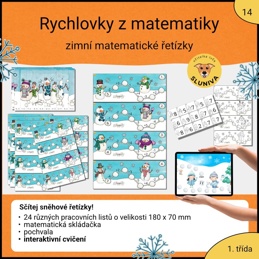 - 24 pracovních karet – matematické řetízky (obor do 10 pro 1. třídu)