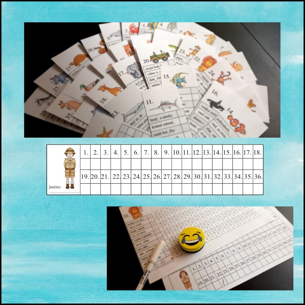 - 36 karet se sloupečky slov k doplňování
