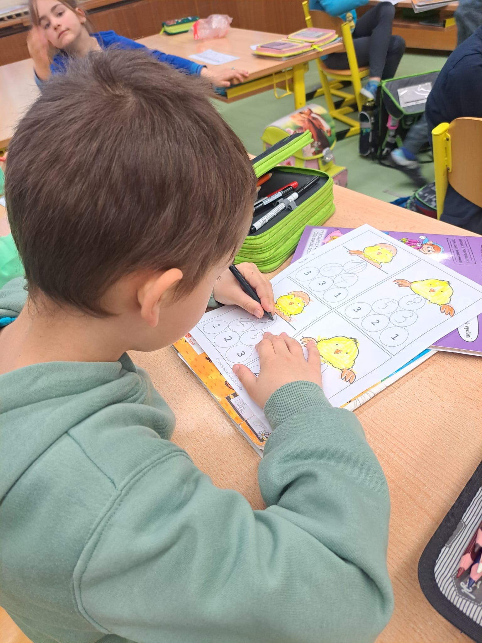 Nejvíc je bavila poznávačka s tajenkou – běhaly po chodbě, hledaly obrázky a samy si skládaly řešení. Měla jsem radost, jak se do toho všechny zapojily a jak je to bavilo. Skvěle fungovaly také velikonoční matematické pyramidy, bludiště i matematické řetízky.