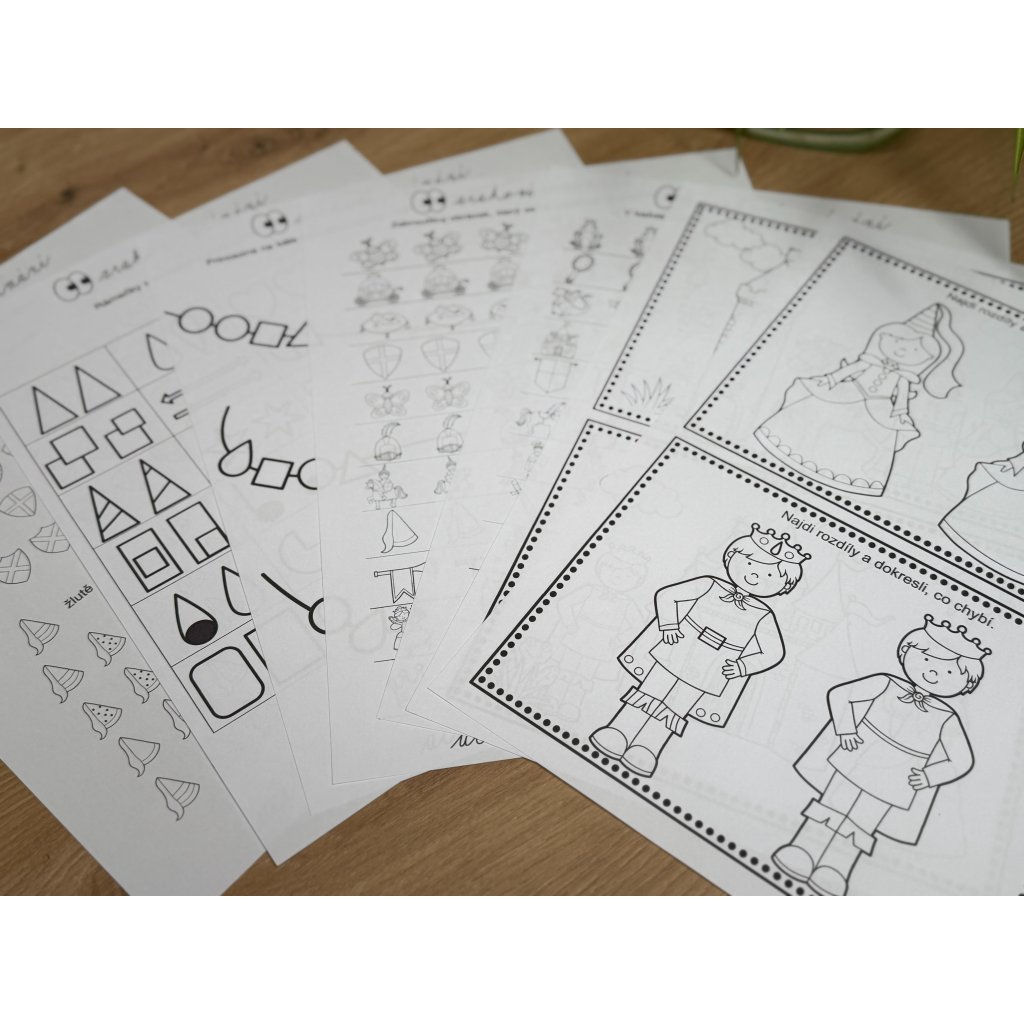Uvnitř je připravený ucelený balíček pracovních listů a kartiček na rozvoj zrakového vnímání: